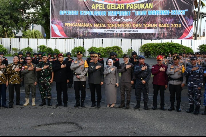 GlobalSulbar.com, Mamuju – Pj Gubernur Sulbar Prof. Zudan Arif Fakrulloh turut menghadiri Apel Gelar Pasukan Operasi Lilin Marano, Kamis, 21 Desember 2023
