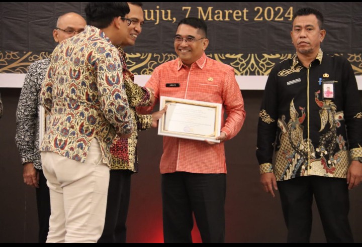 Asisten III Setda Sulbar, Amujib mewakili Pj Gubernur Sulbar Prof Zudan Arif Fakrulloh menerima secara langsung penghargaan tersebut di Hotel Maleo, Kamis 7 Maret 2024.