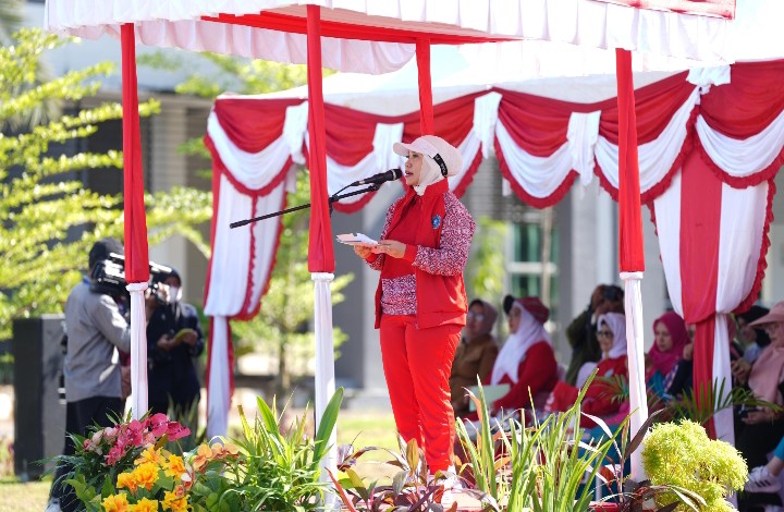 GlobalSulbar.com, Mamuju – Pada puncak peringatan Hari Kesatuan Gerak (HKG) PKK yang ke 52 Tahun, PKK Sulbar menggelar pasar murah dan defile di halaman kantor Gubernur Sulbar, Selasa 22 Oktober 2024.