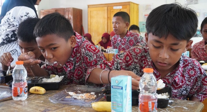 Acara tersebut disambut antusias oleh murid di SD tersebut, para siswa menikmati berbagai hidangan makan siang dengan lauk berupa ikan, telur dan susu yang disajikan secara gratis.