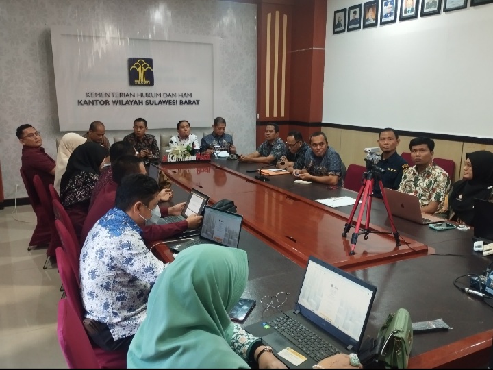 Rapat tersebut dipimpin oleh Kepala Kanwil Kemenkumham Sulbar, Sunu Tedy Maranto, dan turut dihadiri Kepala Biro Hukum Aprisal, Kepala Divisi Kemenkumham Sulbar John Batara, serta Tim perancang Perundang-undangan kemenkumham dan para perwakilan dari (OPD) terkait.