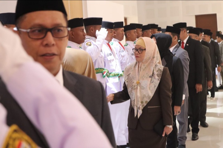 GlobalSulbar.com, Mamuju – Gubernur Sulbar, Suhardi Duka (SD) memimpin Upacara Pengukuhan Pasukan Pengibar Bendera Pusaka (Paskibraka) Tingkat Provinsi Sulbar Tahun 2025, di Ballroom Andi Depu Kantor Gubernur Sulbar, Jumat 15 Agustus 2025.