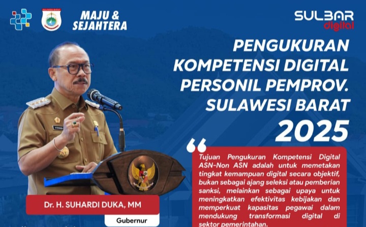GlobalSulbar.com, Mamuju – Pemerintah Provinsi Sulawesi Barat bakal menggelar Pengukuran Kompetensi Digital Personel Pemprov Sulbar Tahun 2025 pada Rabu, 20 Agustus 2025.