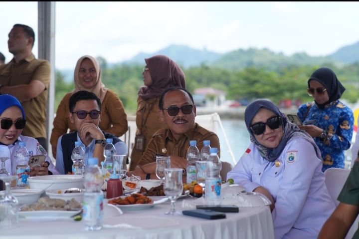 Terlihat, Gubernur Sulbar, Suhardi Duka, beserta Forkopimda dan jajaran Pemkab Mamuju ikut menyaksikan dari Dermaga Lanal Mamuju.