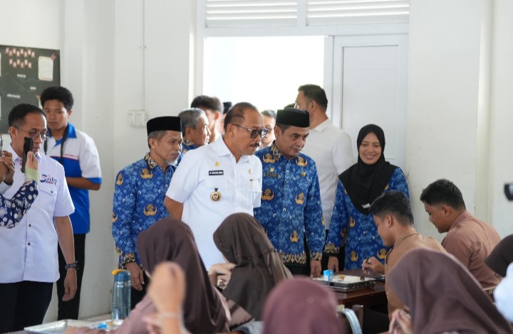 Dalam kunjungan tersebut, Gubernur bersama rombongan pimpinan OPD juga berinteraksi langsung dengan siswa, meninjau menu makanan yang disajikan, serta mendengarkan masukan dari pihak sekolah.