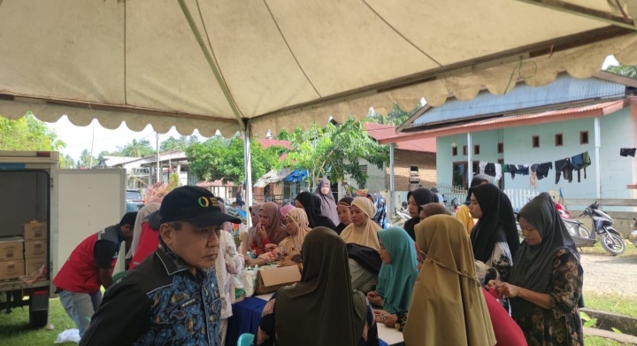 GlobalSulbar.com, Mamuju – Dinas Ketahanan Pangan (Disketapang) Sulbar menggandeng Bank Indonesia (BI) perwakilan Sulbar dan Bulog Mamuju untuk menggelar pasar murah, di Lapangan Desa Bambu, Kecamatan Mamuju, Kabupaten Mamuju, Sulbar, Kamis 2 Oktober 2025.