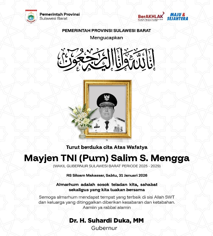 Kepergian Mayor Jenderal TNI (Purn) Salim Mengga menjadi duka mendalam bagi Pemerintah Provinsi Sulawesi Barat dan seluruh masyarakat Sulbar.
