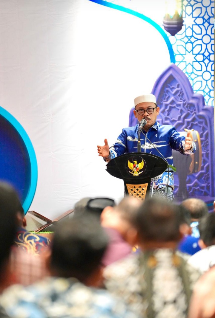 GlobalSulbar.com, Mamuju – Gubernur Sulawesi Barat, Suhardi Duka memaparkan perihal syarat sebuah bangsa bisa berdiri kuat saat mengisi kultum selepas salat Dzuhur berjamaah di Musholla Panca Daya, Lantai 2 Kantor Gubernur Sulbar, Kamis, 19 Februari 2026.