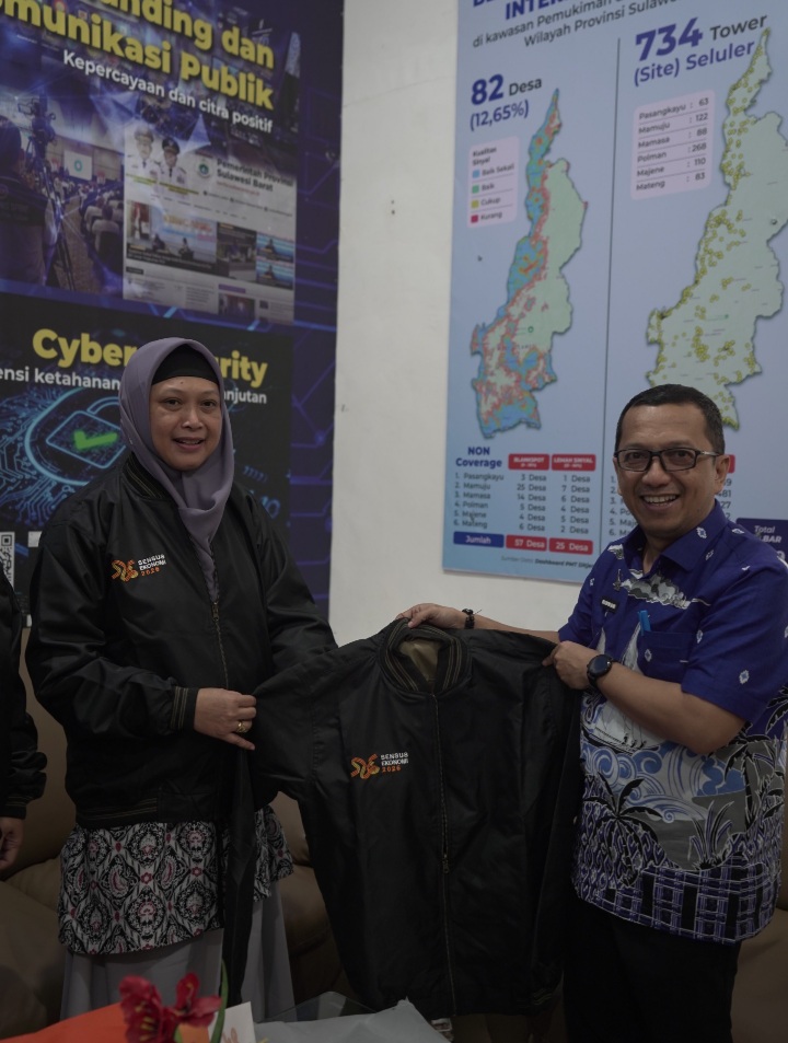 GlobalSulbar.com, Mamuju – Kepala Dinas Komunikasi, Informatika, Statistik dan Persandian (KominfoSS) Provinsi Sulawesi Barat (Sulbar), Muhammad Ridwan Djafar, menerima kunjungan Kepala Badan Pusat Statistik (BPS) Sulbar, Suri Handayani, di Ruang Rapat Dinas KominfoSS Sulbar, Kamis, 26 Februari 2026.