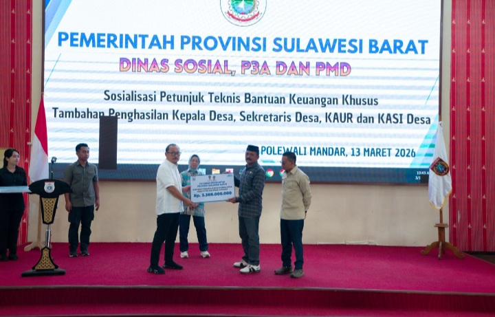 GlobalSulbar.com, Polman – Gubernur Sulawesi Barat, Suhardi Duka menghadiri kegiatan sosialisasi petunjuk teknis (juknis) Bantuan Keuangan Khusus (BKK) tambahan penghasilan bagi kepala desa, KAUR, dan Kasi desa, di Kantor Bupati Polewali Mandar, Jumat, 13 Maret 2026.