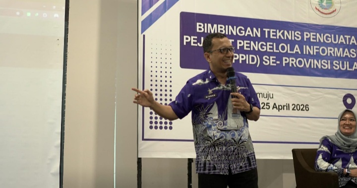 GlobalSulbar.com, Mamuju – Kepala Dinas Kominfo Statistik dan Persandian Sulawesi Barat, Muhammad Ridwan Djafar, membuka Bimtek Penguatan Kapasitas SDM PPID se-Sulbar, di Hotel Matos, Mamuju, Kamis 23 April 2026.