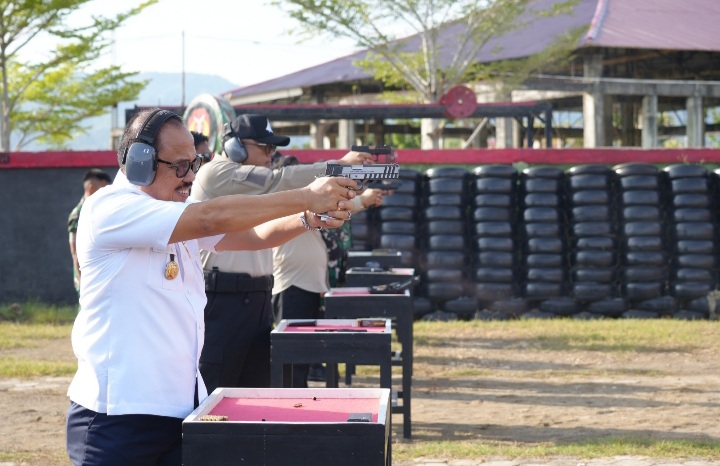 Eksibisi menembak tersebut diikuti oleh Forkopimda Sulbar.